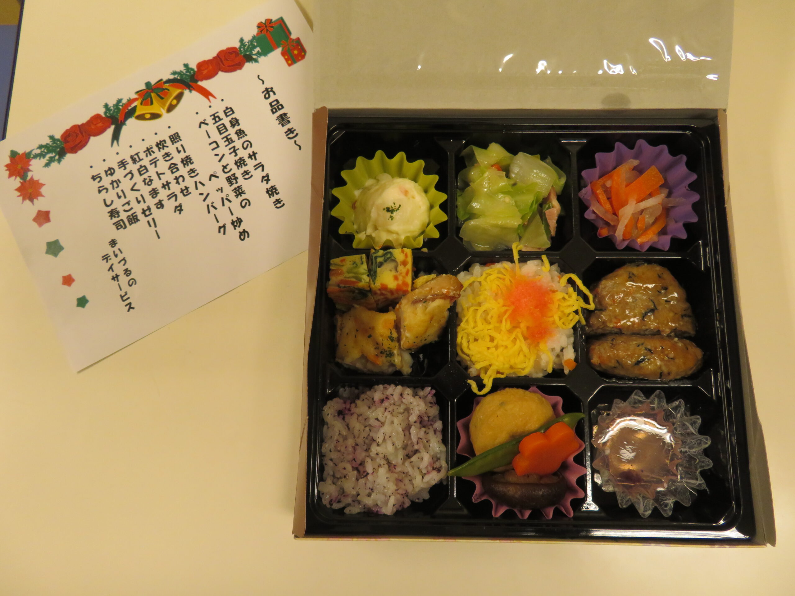 この日の昼食はいつもより少しだけ豪華な松花堂お弁当でおやつはクリスマスケーキを召し上がっていただきました!!