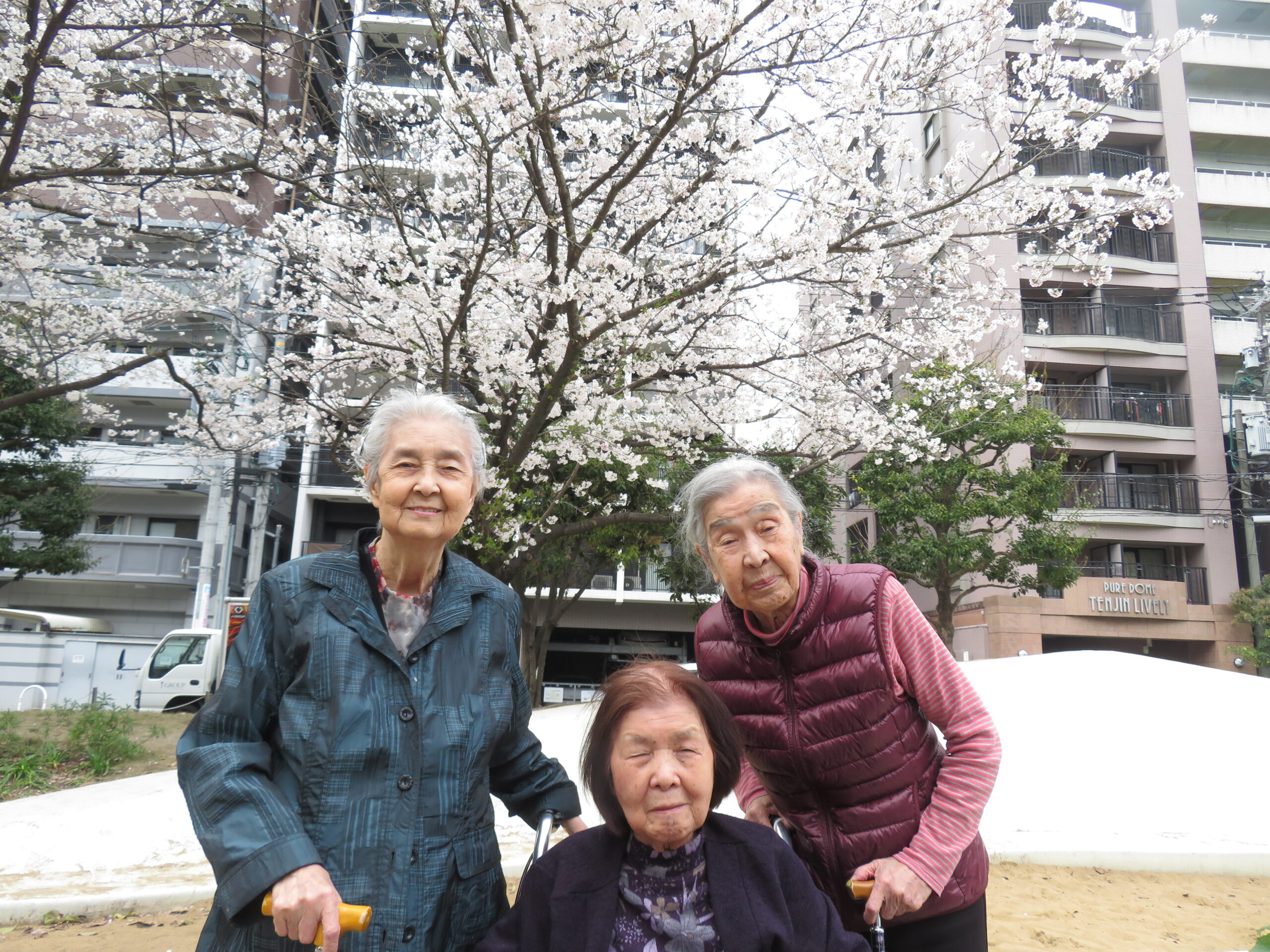 今月初めに外出レクリエーションで、近くの長浜公園へお花見に行きました。