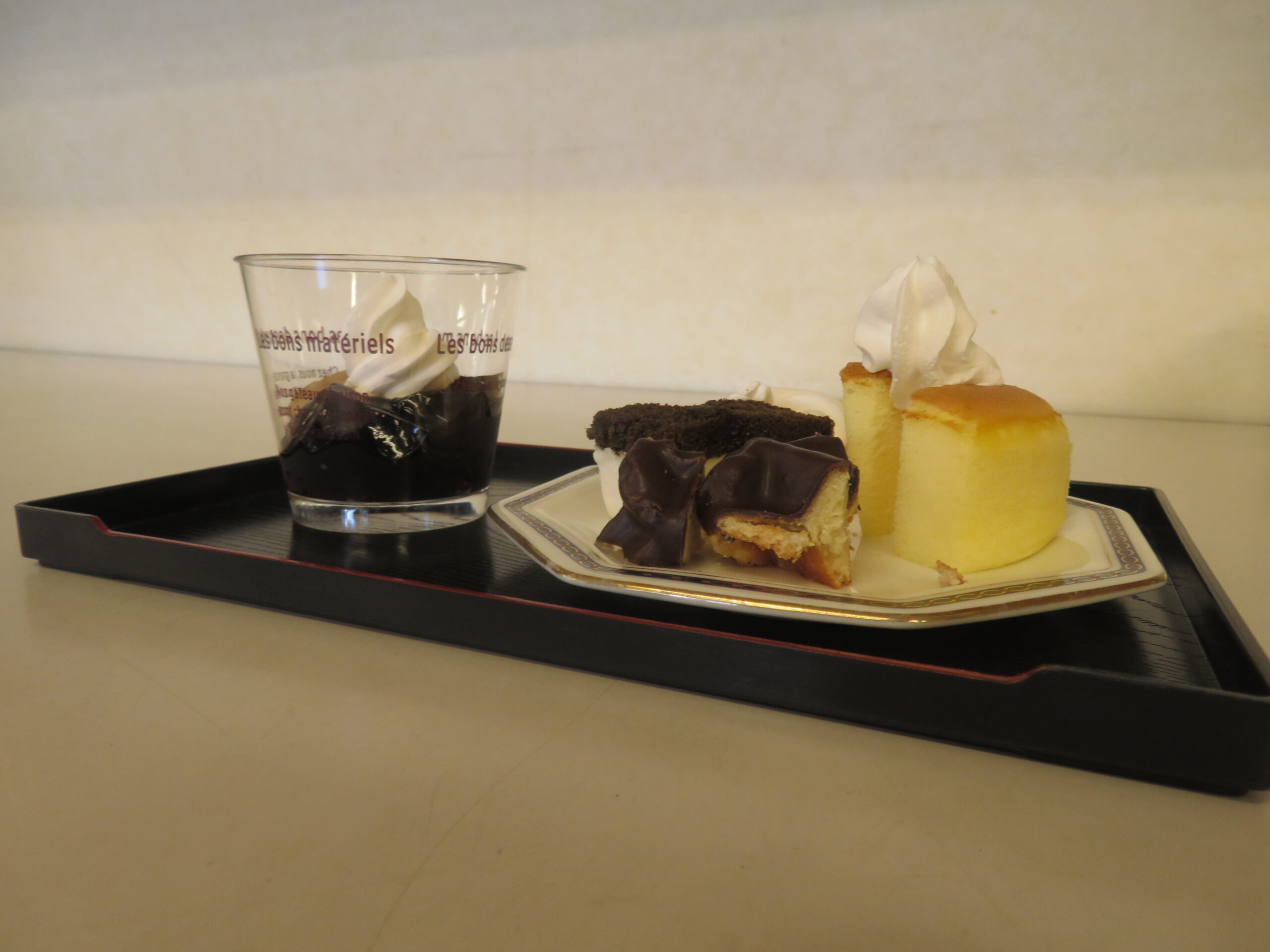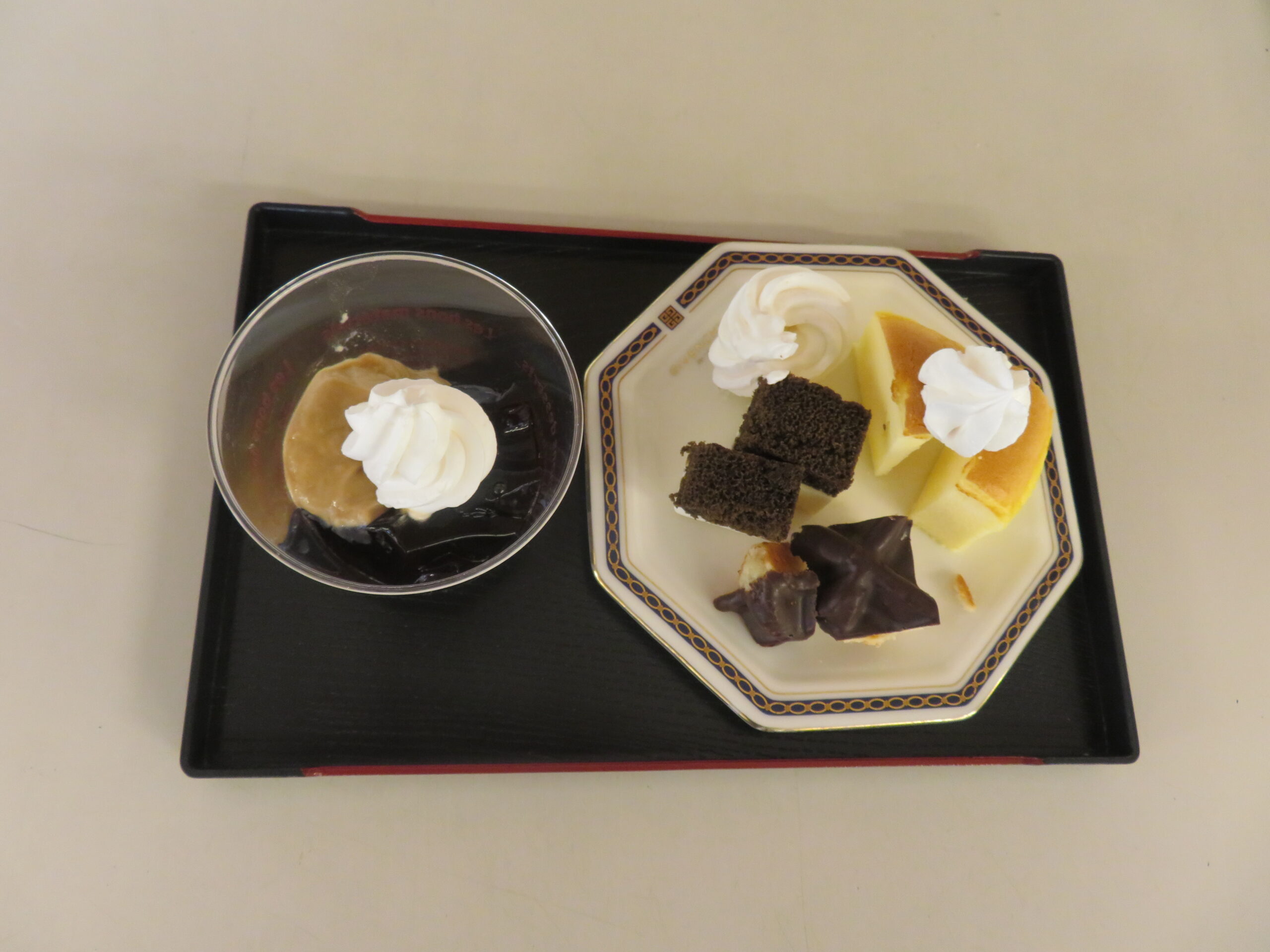 今回は一皿が台湾カステラとチョコワッフル、ティラミスの盛り合わせでもう一つはキャラメルプリントコーヒーゼリーのカップでまあまあ豪華なラインナップとなりました!